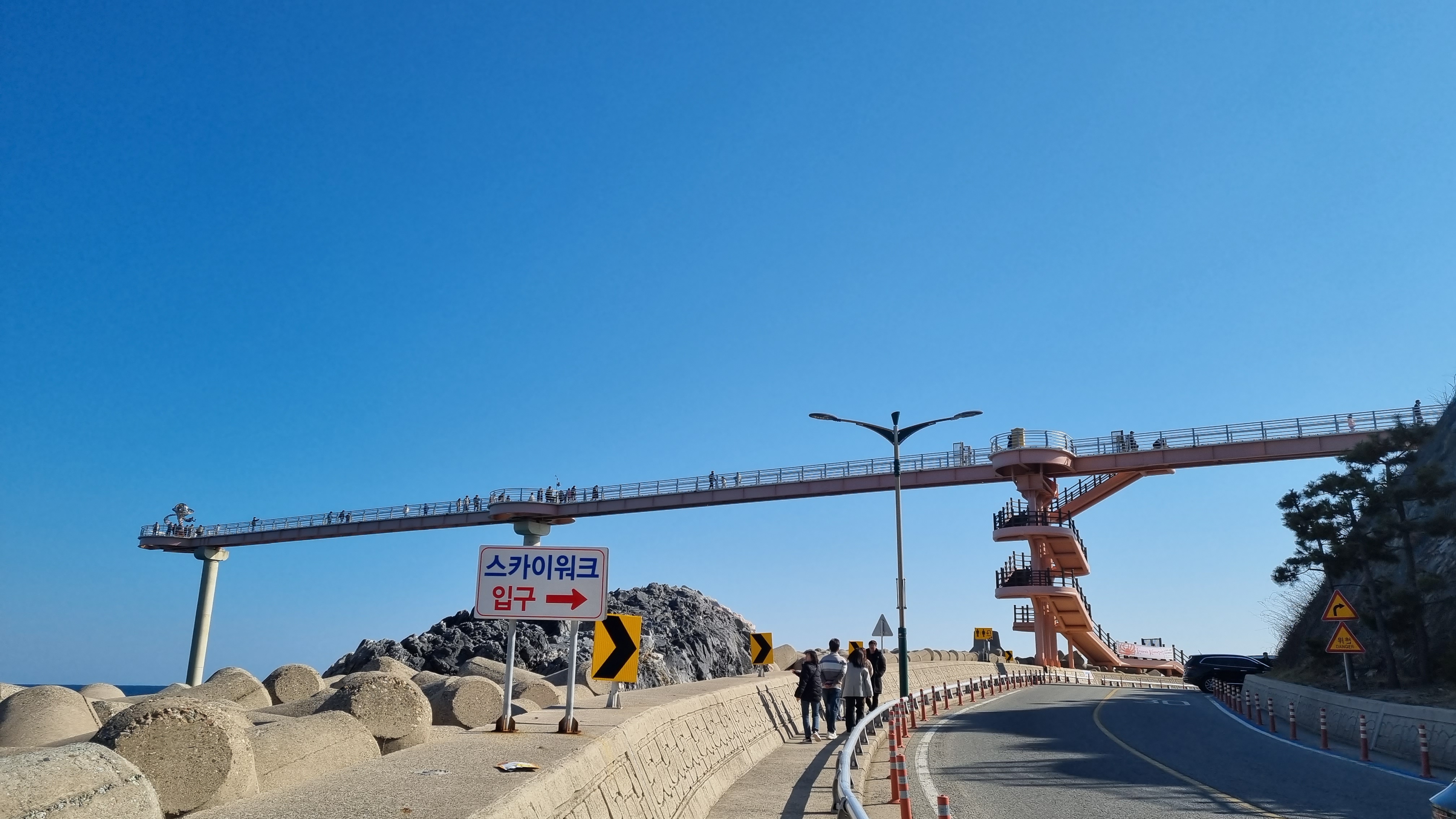 안내소로 돌아와서 바로 앞 계단을 내려오면 화장실과 주차장이 있고 이렇게 스카이워크가 가까이 보인답니다