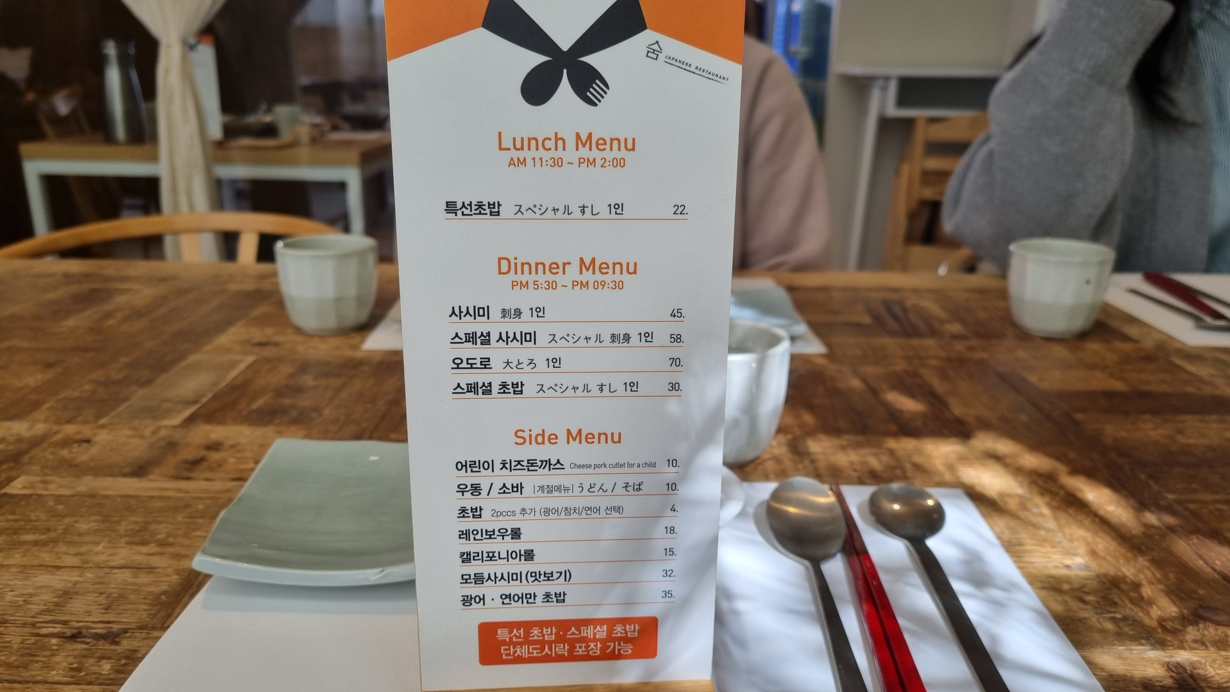 죽동에서 인기있는 식당중 하나인 일식집 "숨" 입니다.