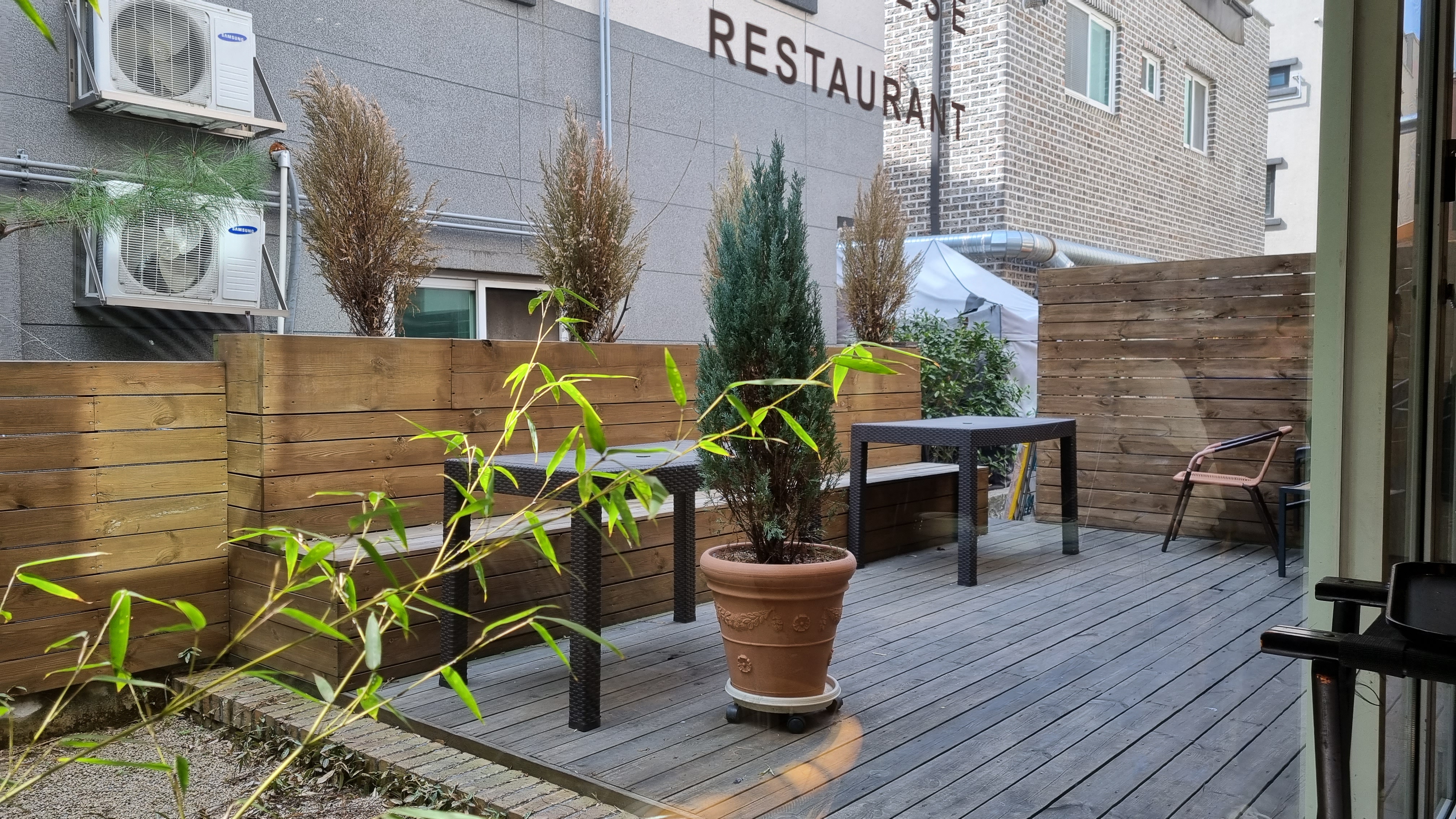 식사공간으로 이용하는지는 잘 모르겠지만 날 좋을땐 저기서 먹어도 참 좋겠어요