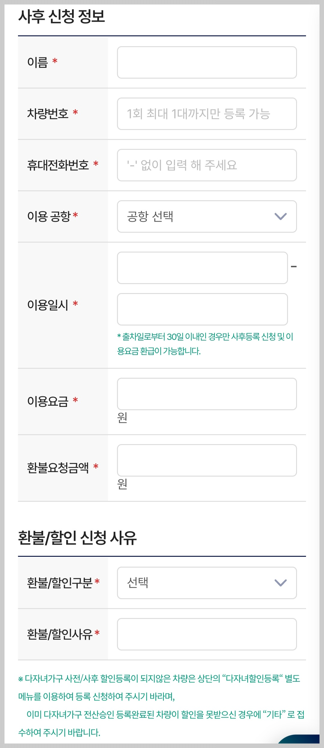 ※ 인천공항은 별도의 사이트가 있으니 확인하시고 신청해 주세요
