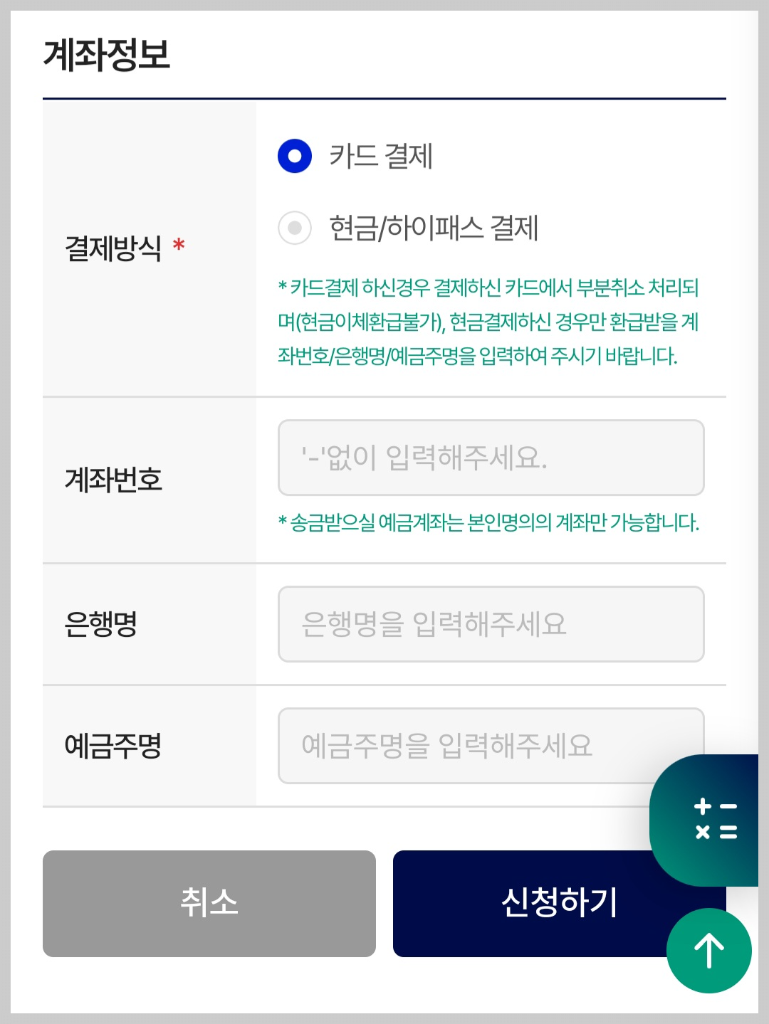 확인이 되면 카드가 부분취소가 되거나 현금결제일 경우