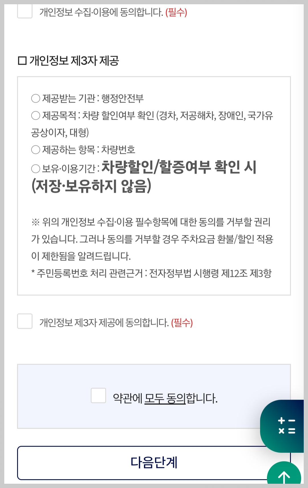 이름과 차량번호는 아까 기재한 대로 자동으로 나왔고