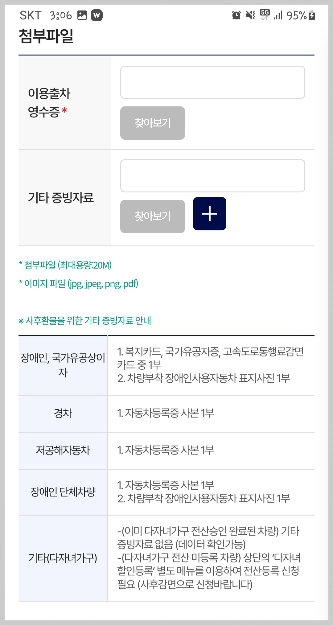 이용출차 영수증도 첨부해 주시고