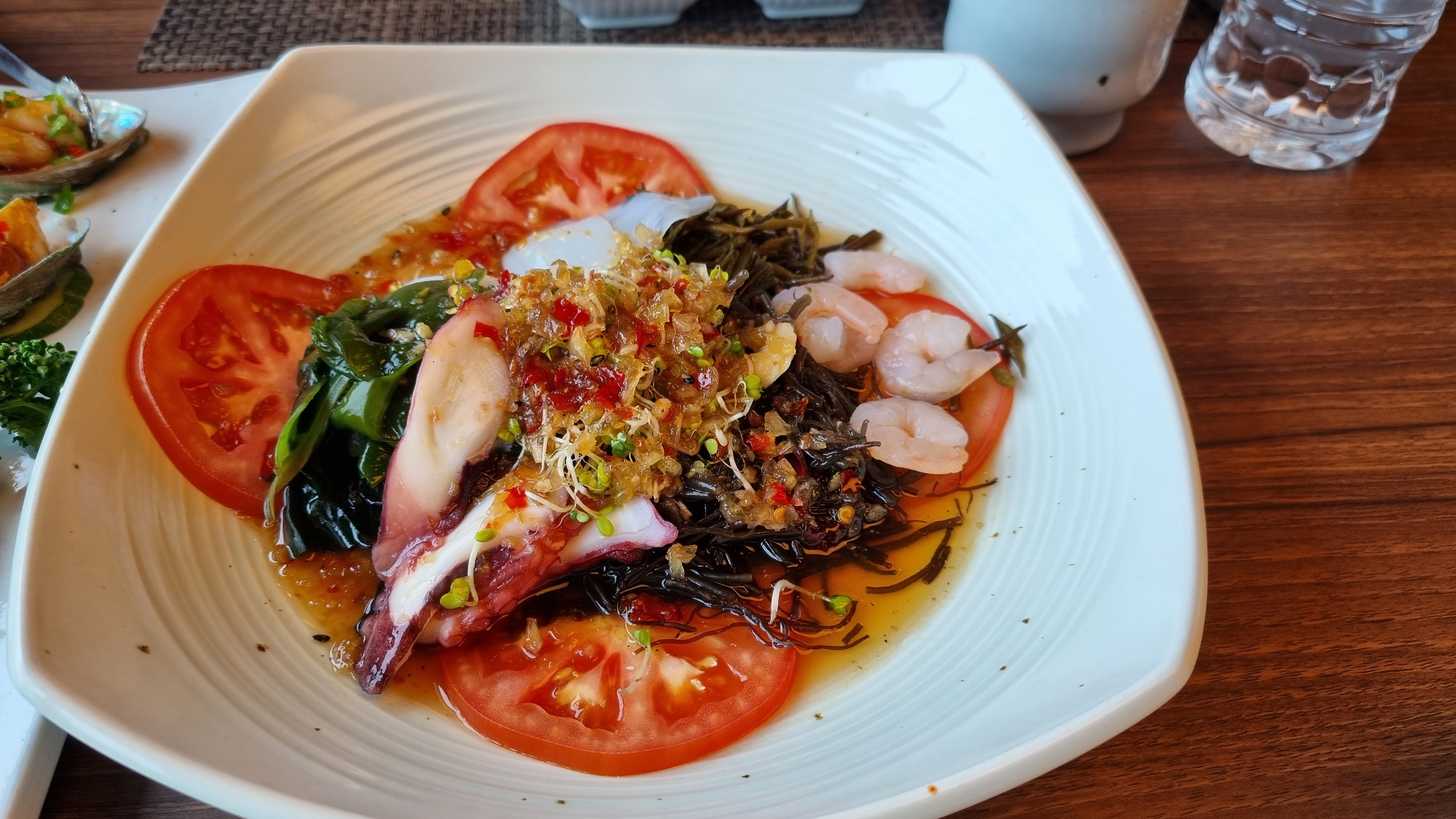 상큼한 소스에 다양한 해초와 문어, 새우가 있어서 입맛을 돋아주었고요