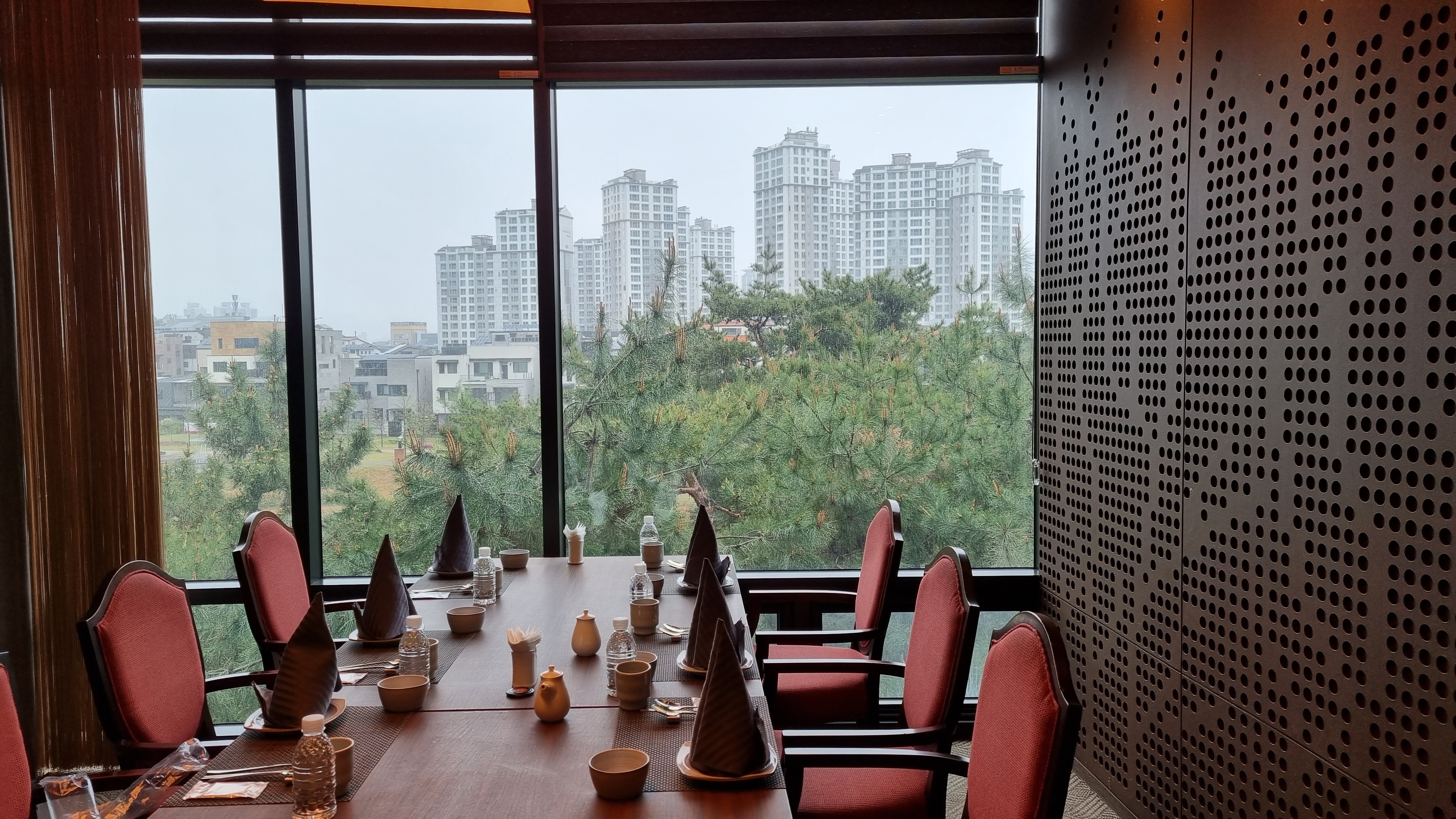 통창이라 뷰가 좋아요 비가 와서 더 파릇파릇한 느낌