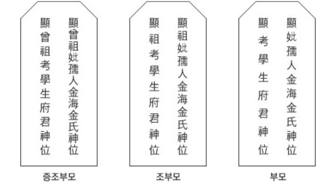 顯祖考(현조고), 顯祖妣(현조비), 顯曾祖考(현증조고), 顯曾祖妣(현증조비)’라고 씁니다