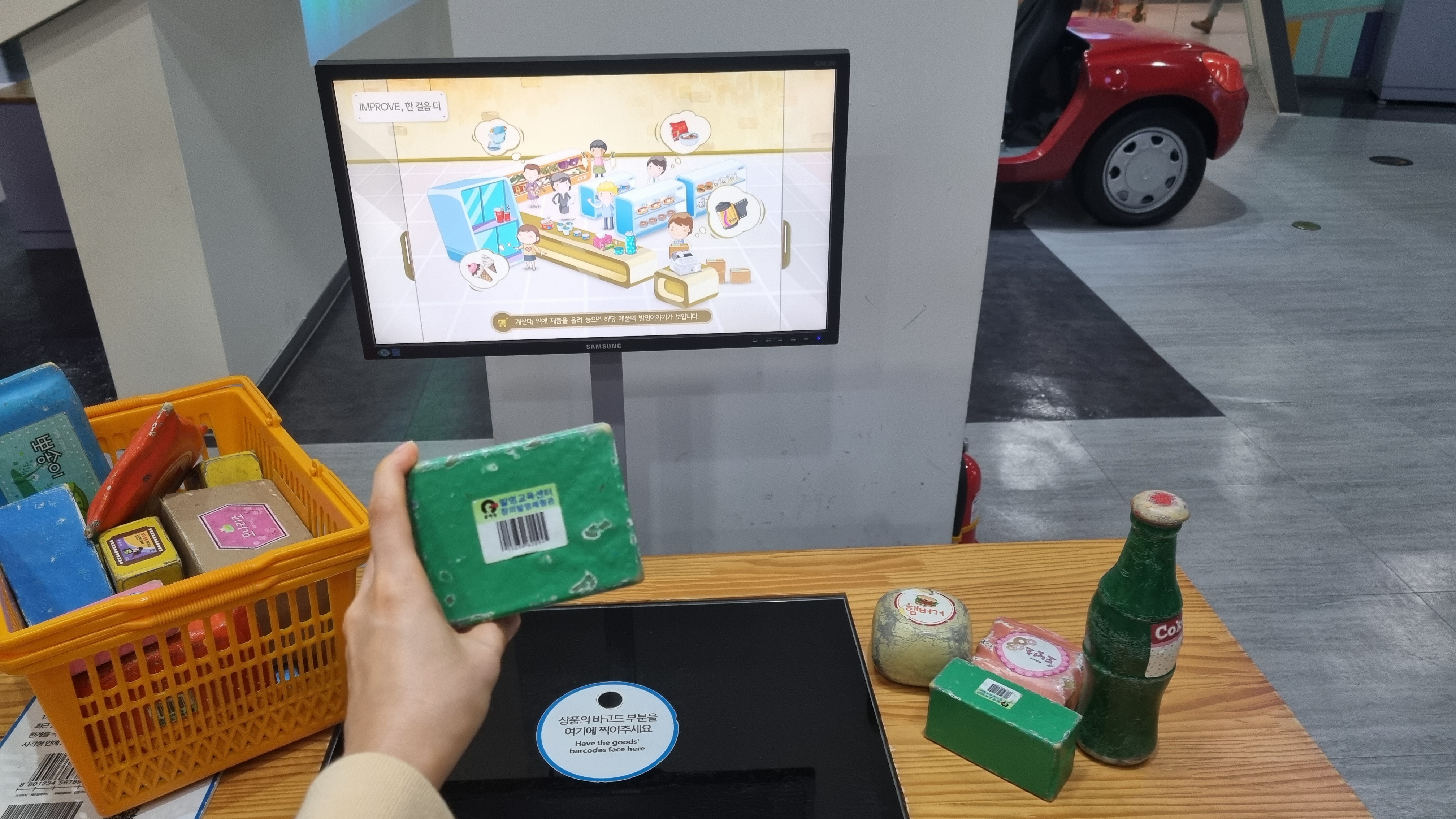 마트놀이도 하고 바코드를 직접 찍을 수 있는데
