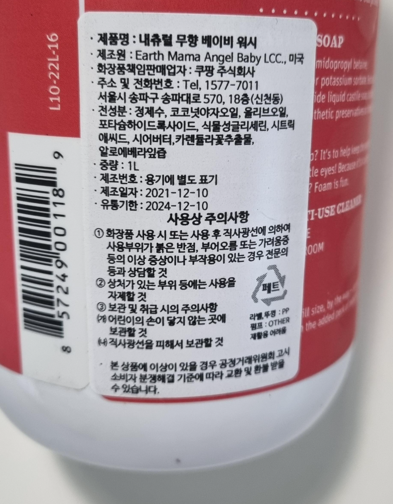 얼스마마 베이비워시 용량으로는 240ml, 1L 두 가지가 있고요