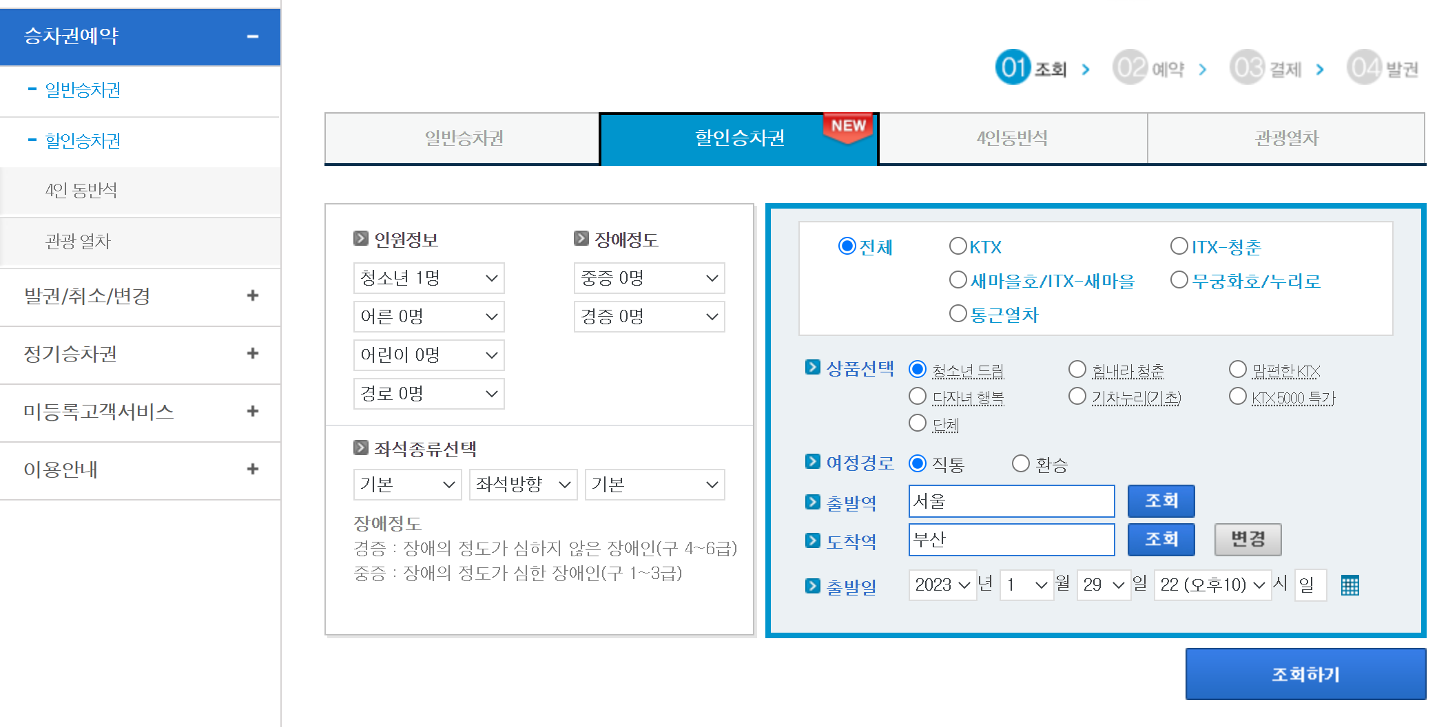 우리는 오늘 할인승차권에 대해 알아볼 거니까 할인승차권 클릭!