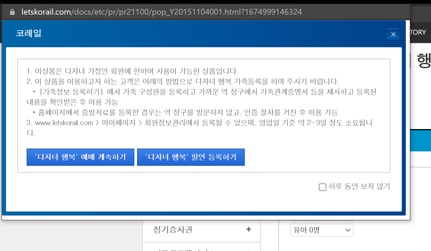 자녀 2명이상이면 신청가능하고 열차예매 시 어른 1명, 아이두명