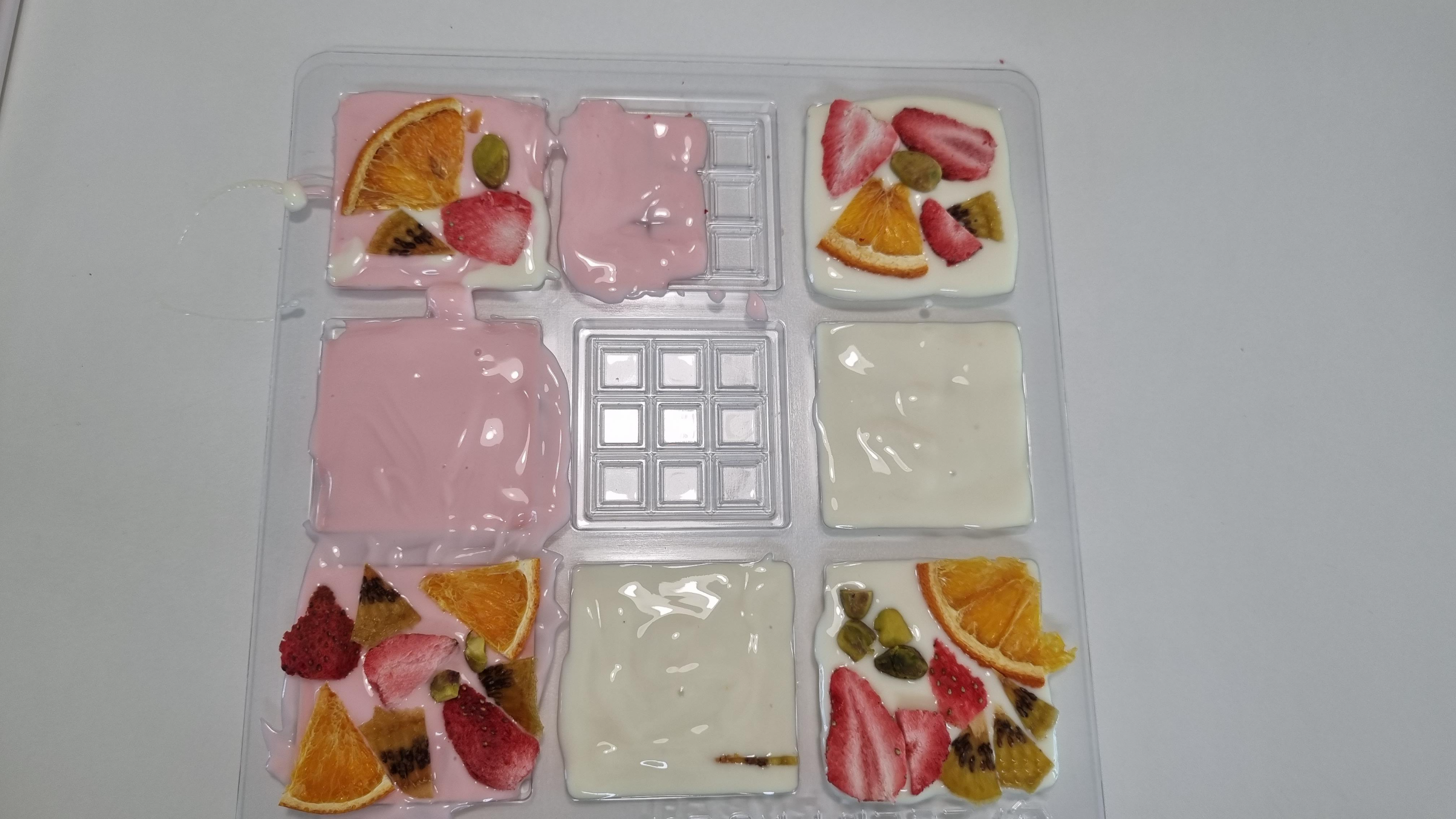 이제 몰드에 부은 초콜렛위에