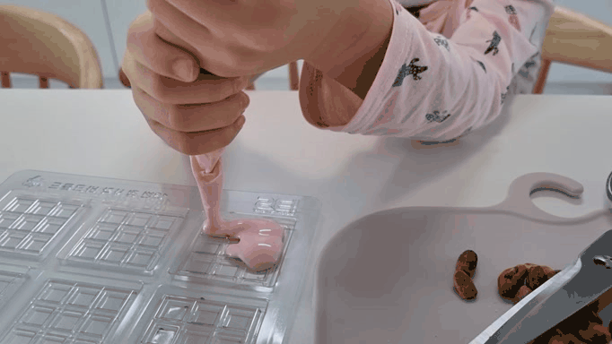 몰드에 초콜렛을 짜줍니다.