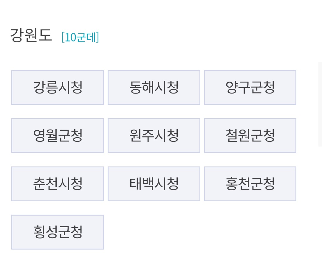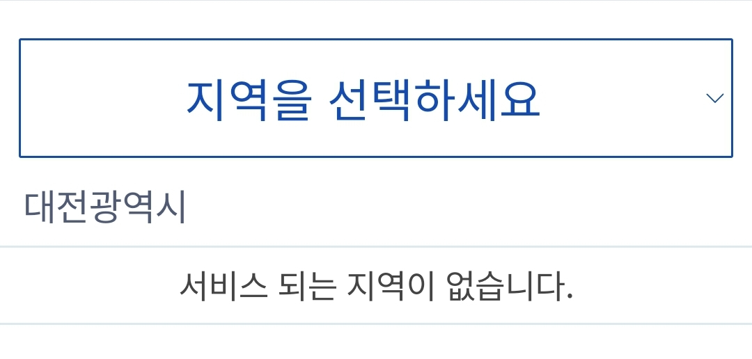 원하는 지역이 서비스가 안될 때는 대전처럼