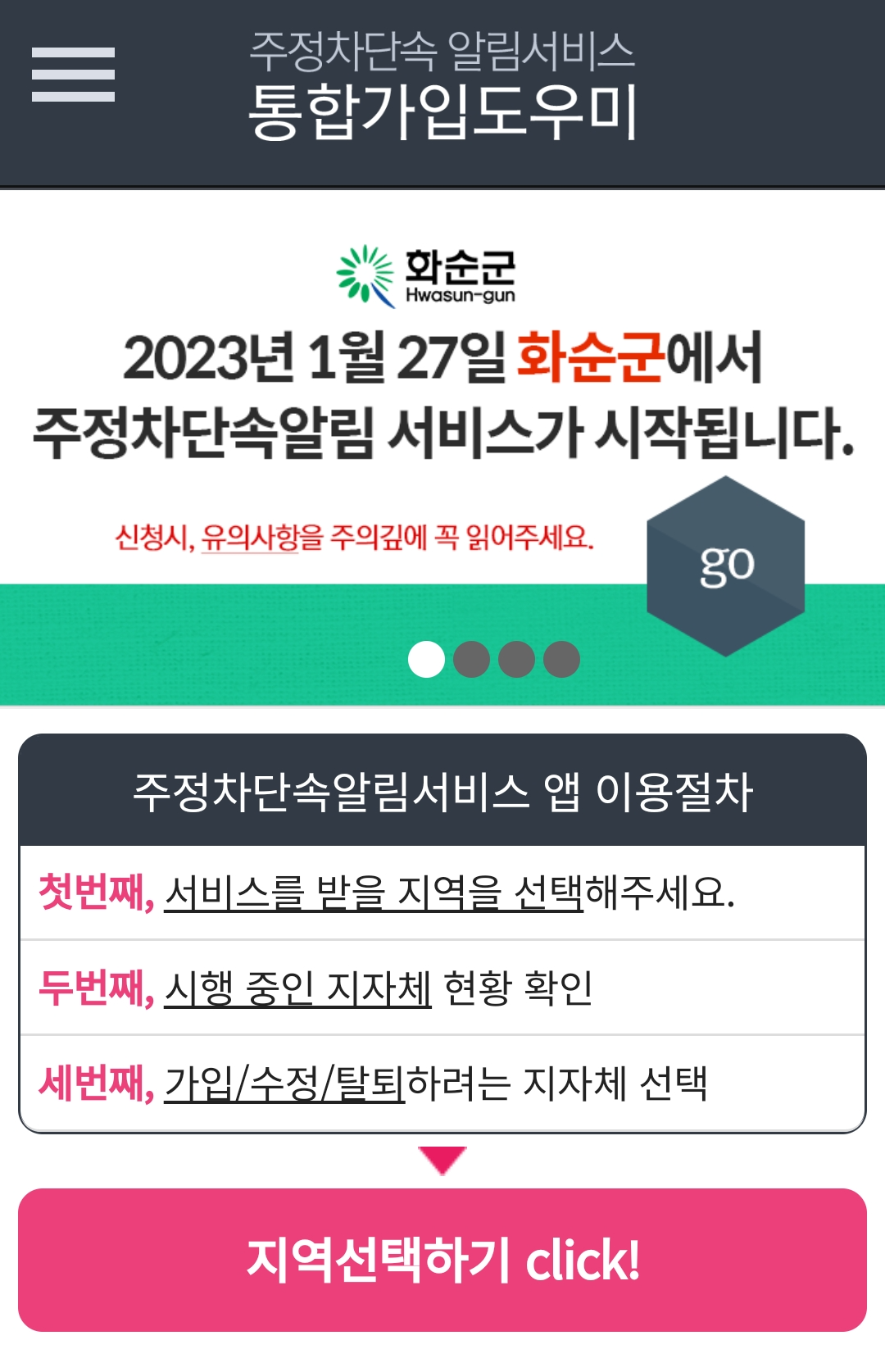 첫 번째, 알림을 받으실 지역을 선택해야 하는데요