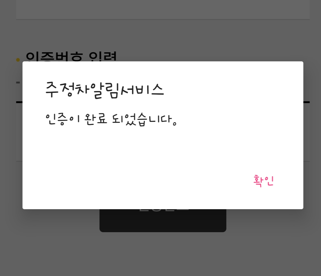 인증이 완료되었다고 창이 떠요