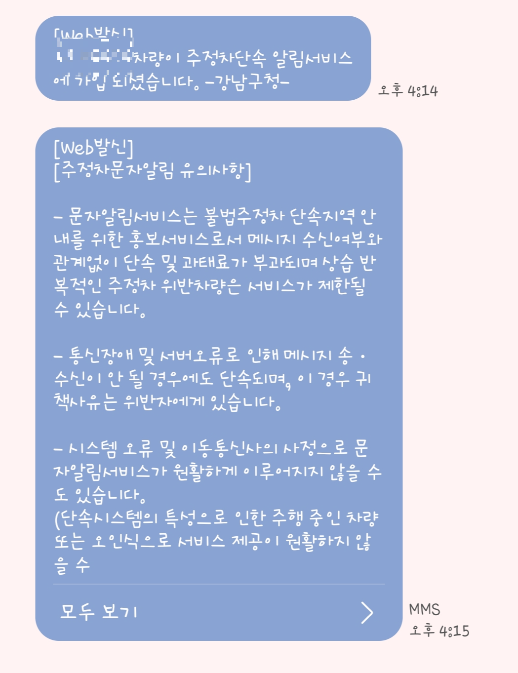 문자로 단속지역에 있으니 차량을 이동하라고 알림이 와요