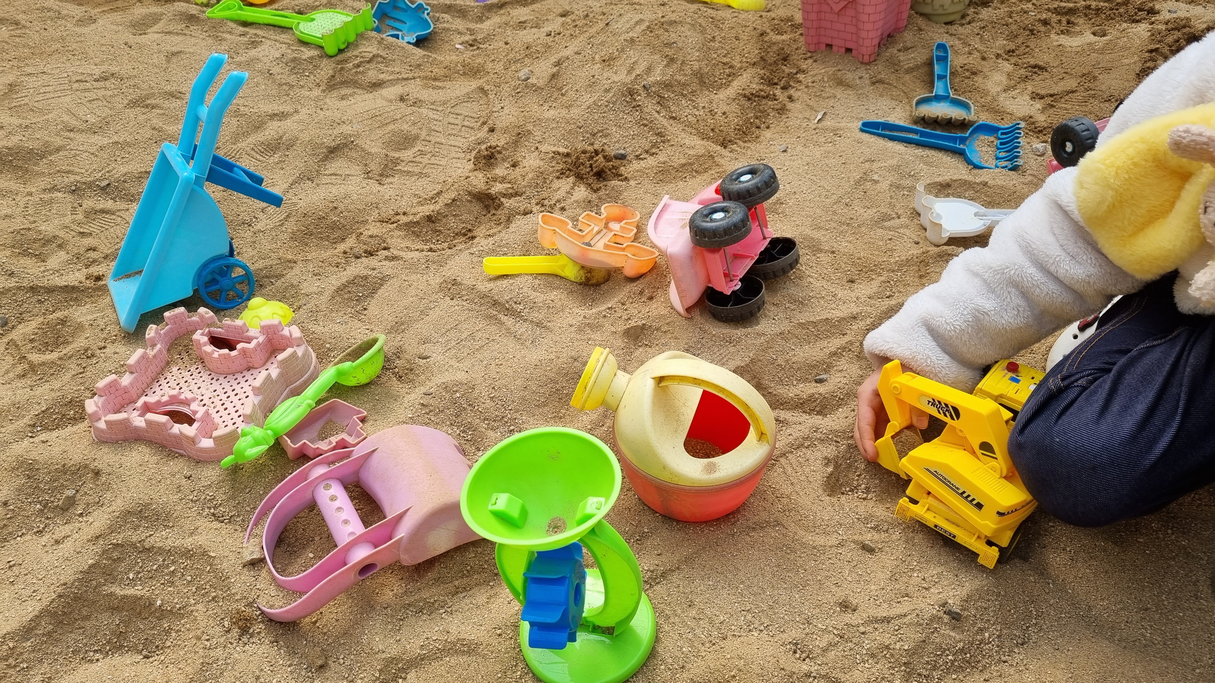 다양한 모래놀이장난감도 있고 물을 떠 와서 모래로 성을 만들기도 하고 한참 놀았어요