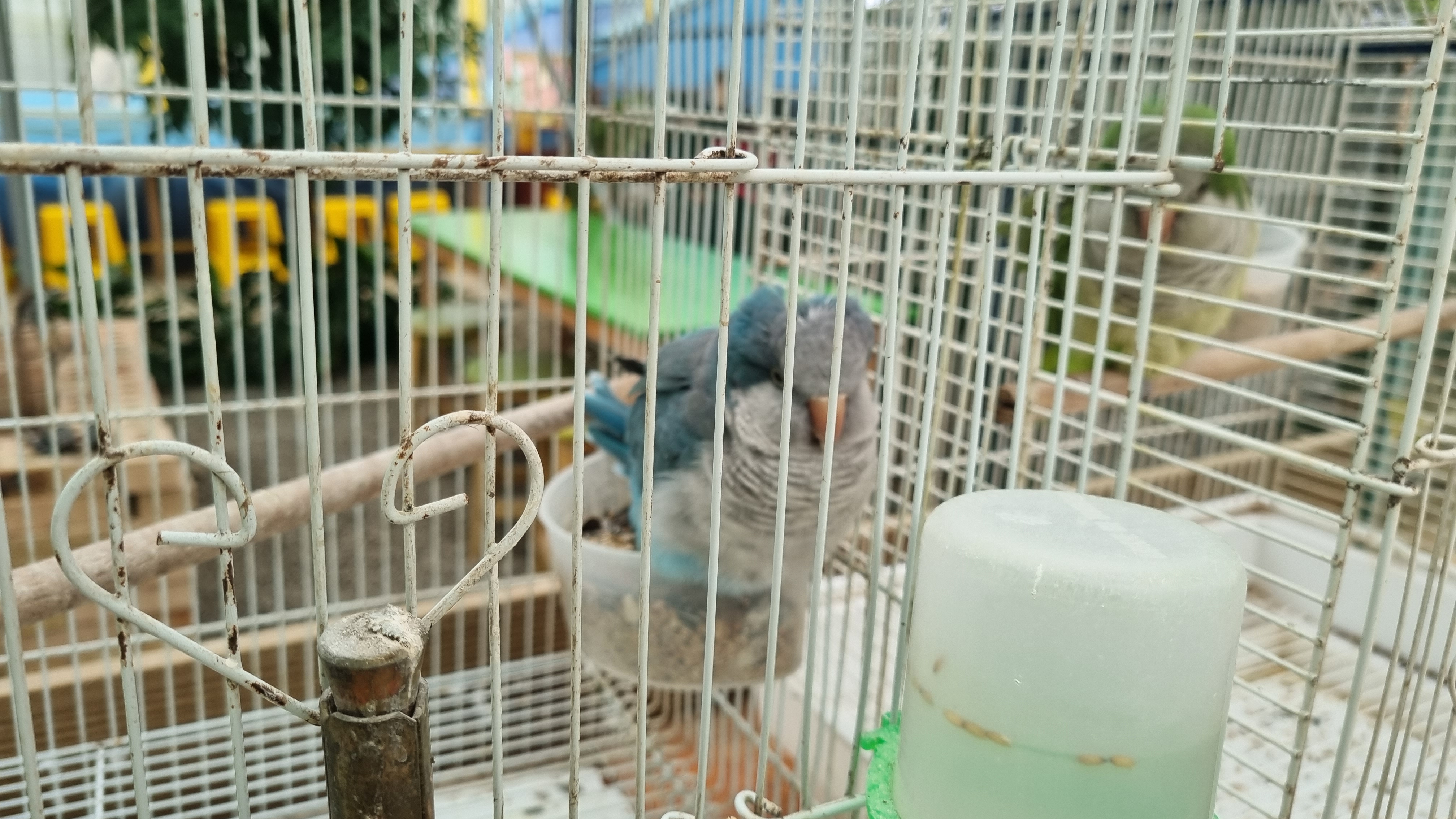 새장마다 다양한 앵무새들이 있어요