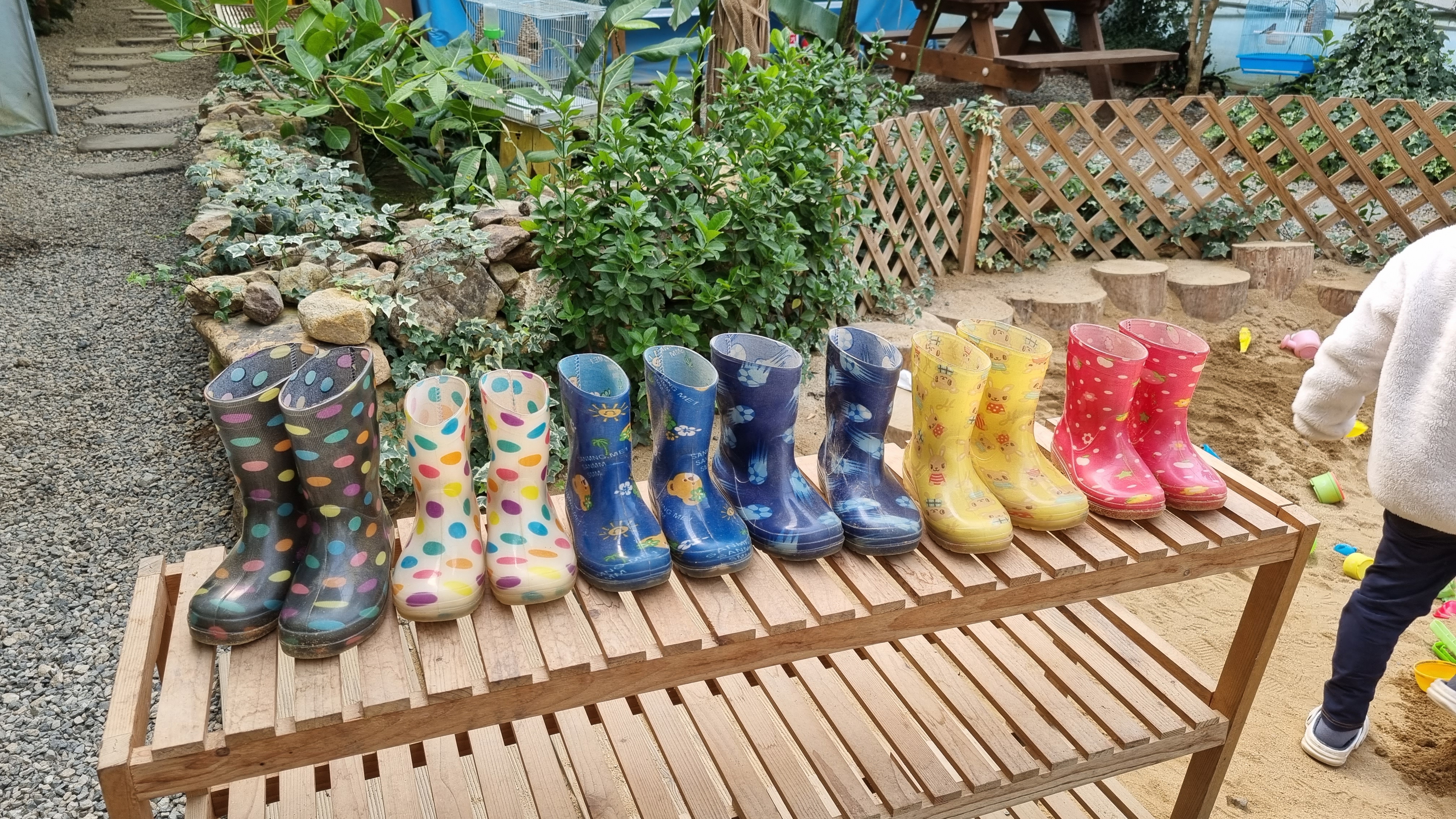 아이들이 장화를 착용하고 편하게 놀이를 진행할 수 있어요