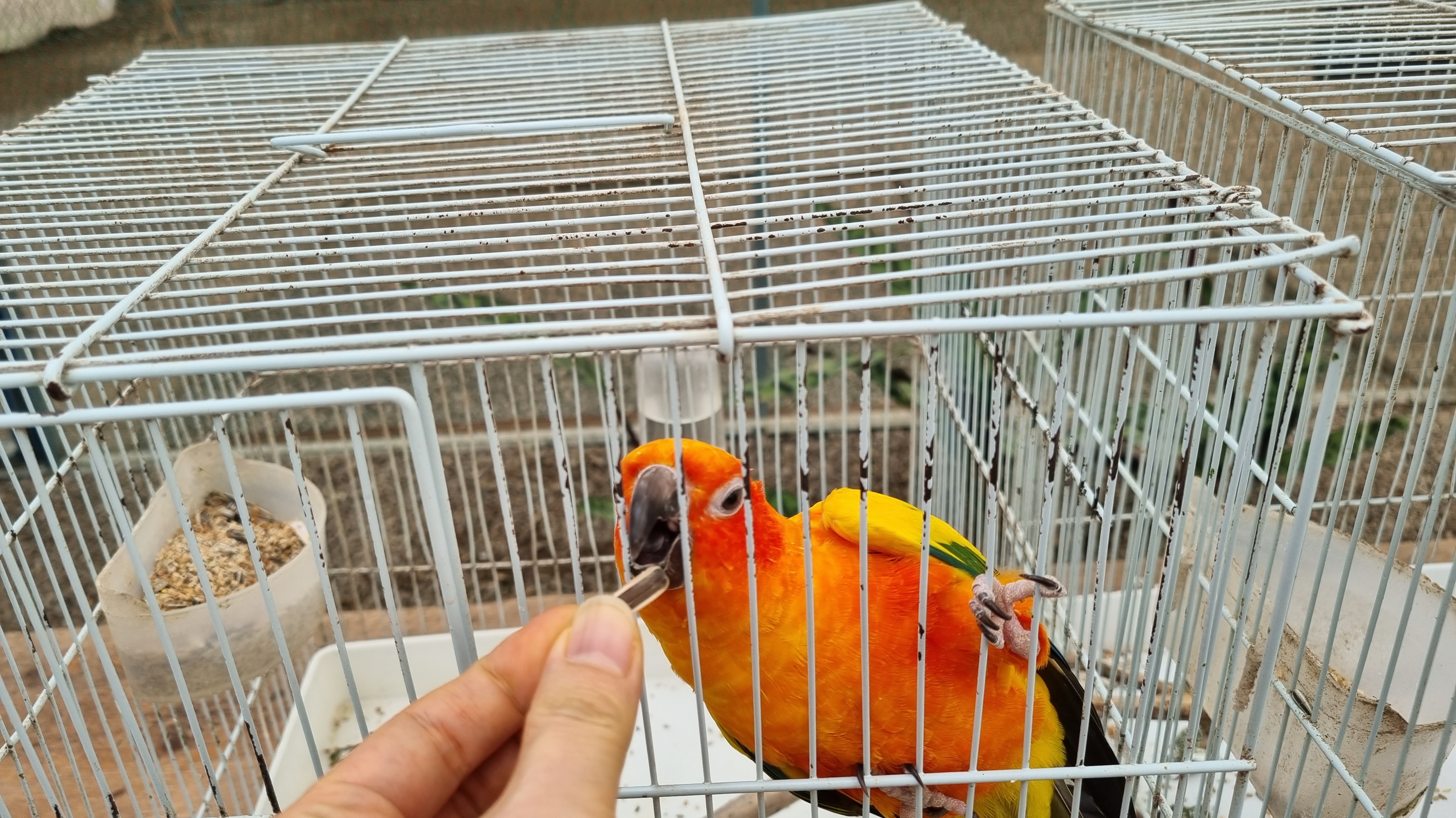 "앵무새들아 많이 먹어~다 먹으면 또 줄게" 하면서 모이를 주네요
